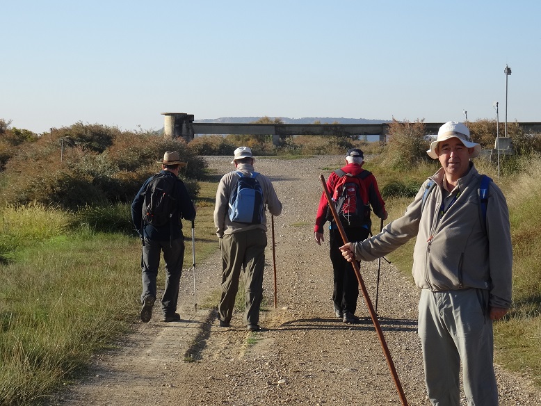 El itinerario de hoy, 22 de octubre de 2015, ha sido bastante asequible con una distancia de unos 14 kms., aproximadamente. Se han seguido caminos de rodadura que nos han llevado por unas extensas planicies, en principio de regadío y después de secano, en los que abundan los cultivos típicos de este tipo de superficies: en regadío, alfalfa, maíz, viñedos y frutales; y en secano, almendros, olivos y cereales.
