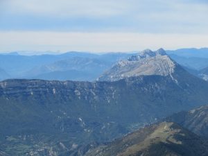 Poder trepar a lo alto de esta montaña, aunque la fatiga haya hecho acto de presencia en algún momento, ha sido toda una experiencia. Brillantes panorámicas se abren ante nosotros, lo que aumenta notablemente el valor de nuestra ascensión, teniendo como justo premio la visión de lo que es la grandeza de la naturaleza. Podemos confundir grandes masas boscosas con las inmensas y oscuras manchas verdes de prados o campos de labor, y jugar al acertijo de adivinar los pequeños pueblos que salpican el fondo de los valles o las laderas de los montes. En lontananza se divisaban unas tendidas fajas de cenicientas brumas cubriendo las extensas superficies de las partes más bajas que acariciaban los montes y cerros y que nada tienen que ver con las inconmensurables figuras de la elevada cordillera pirenaica.