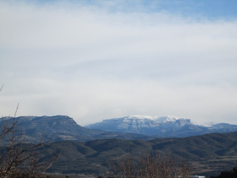 El día de hoy, 16 de enero de 2017, con una temperatura baja y muy adecuada para la práctica senderista, con un cielo claro y despejado que nos ha deparado unas excelentes vistas sobre el fondo de los valles de los ríos Cinca y Ésera, así como de todo el cordal de los Pirineos, impregnados del color blanco de la nieve.